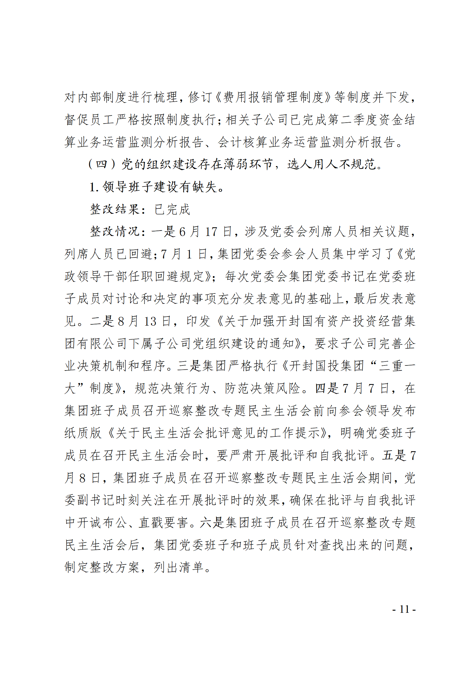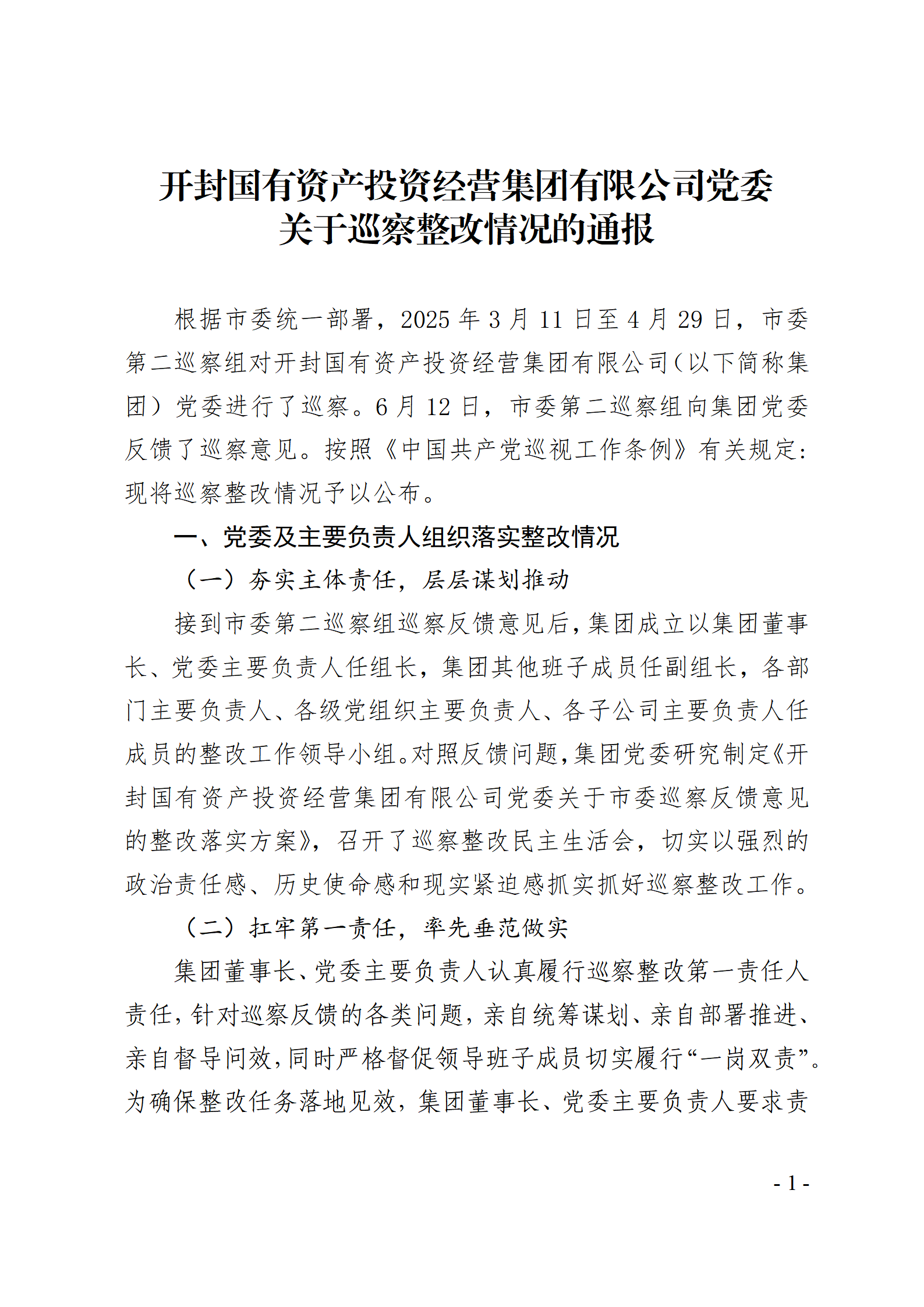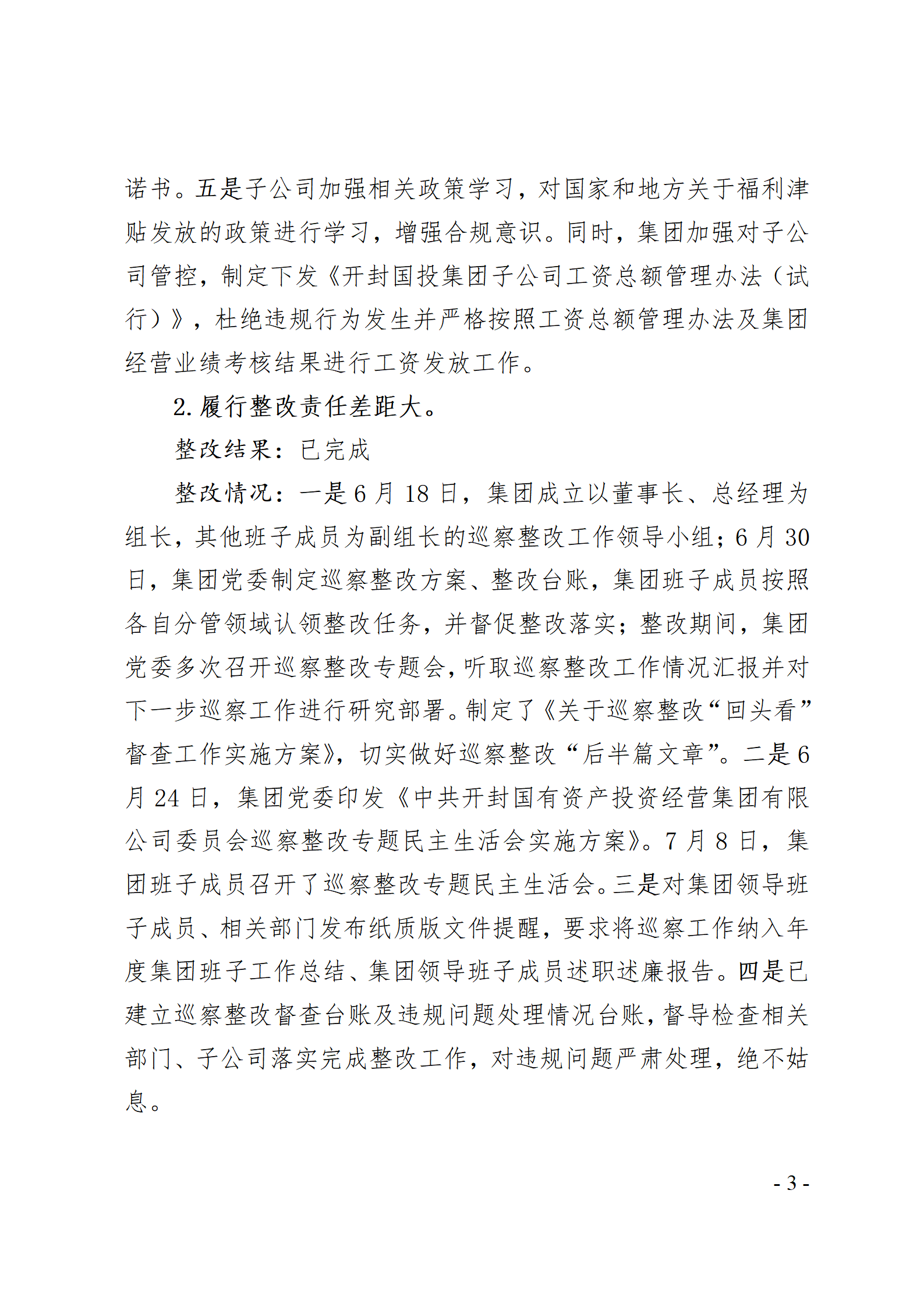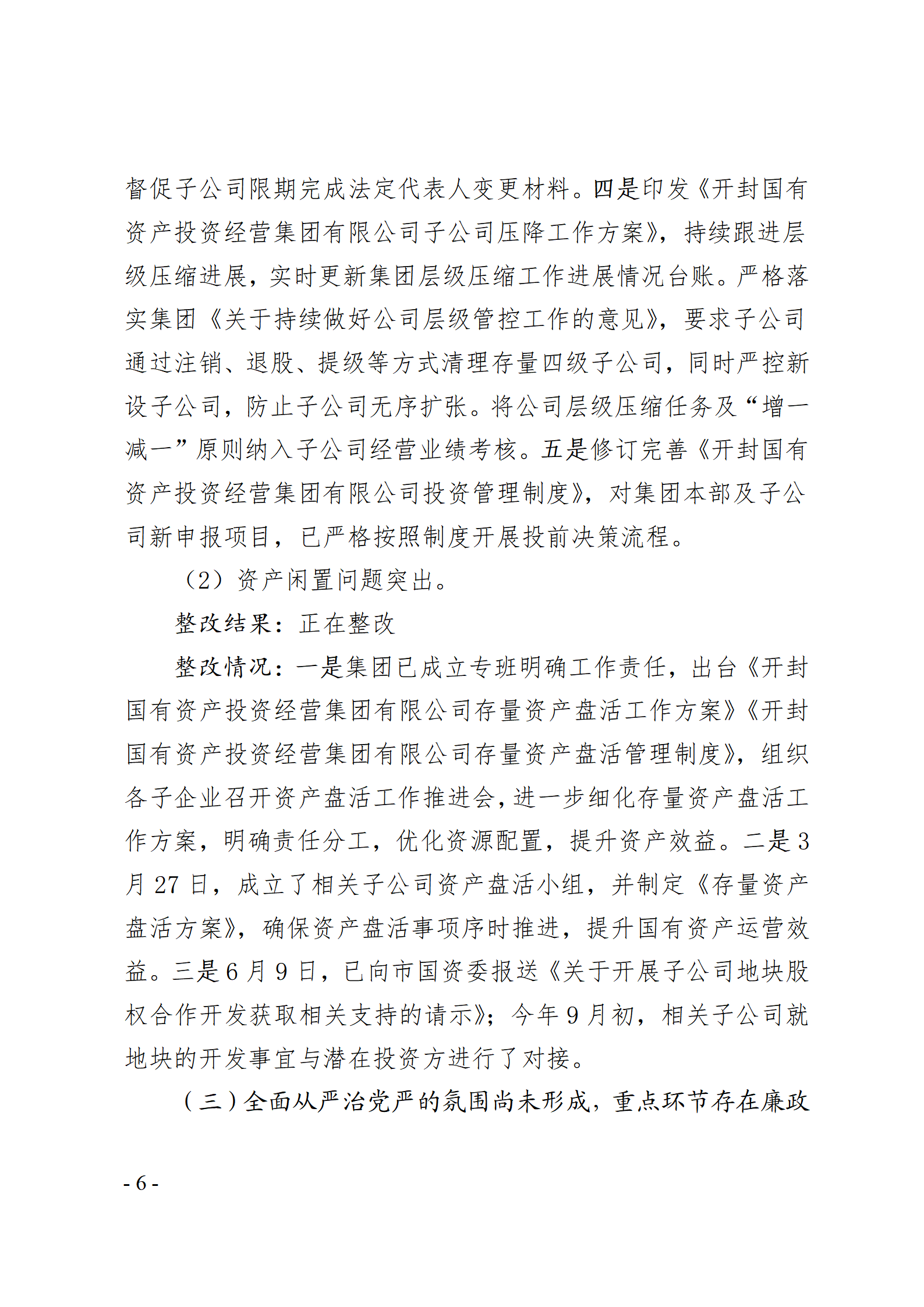 開封國有資產(chǎn)投資經(jīng)營集團有限公司黨委關(guān)于巡察整改情況的通報