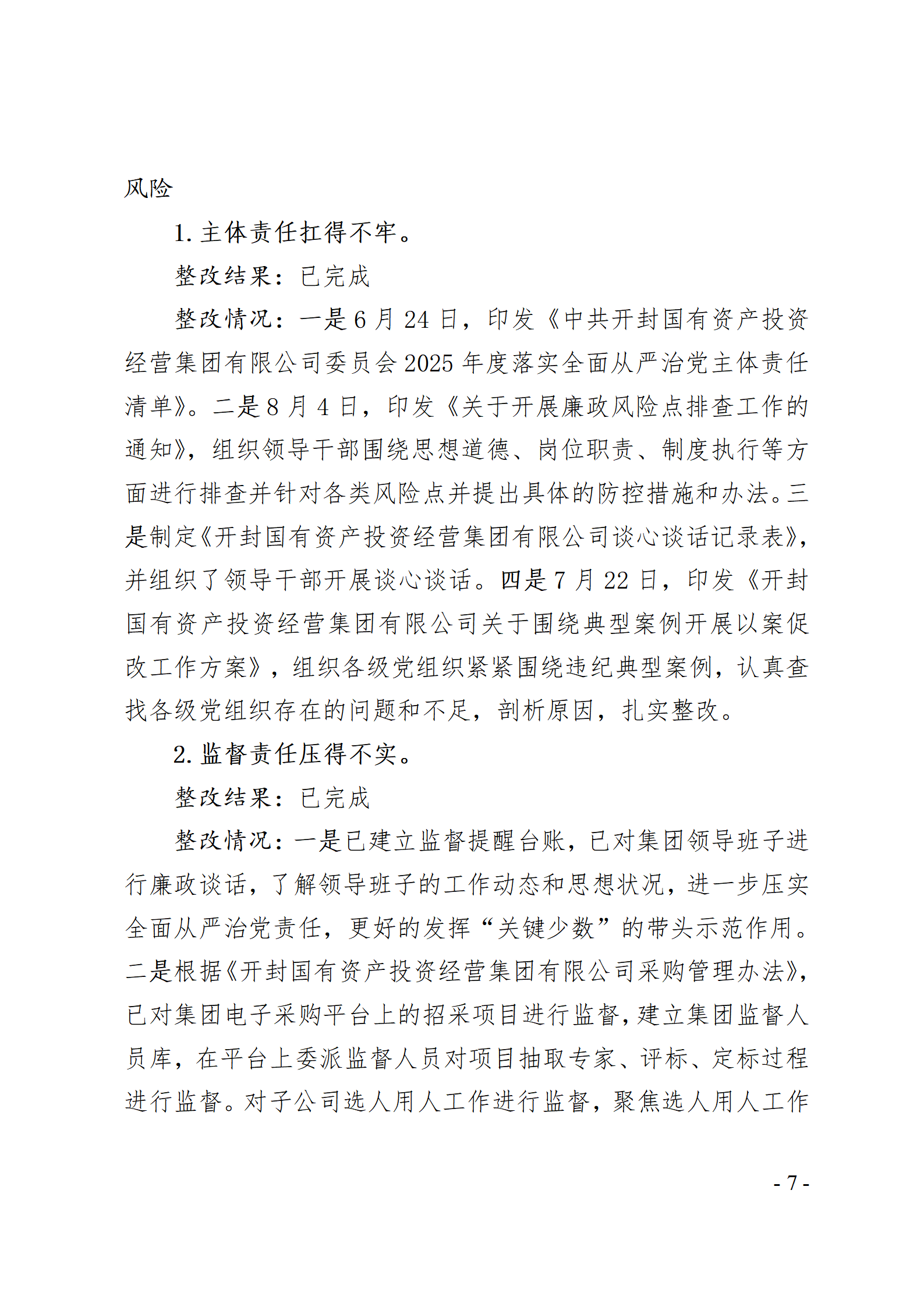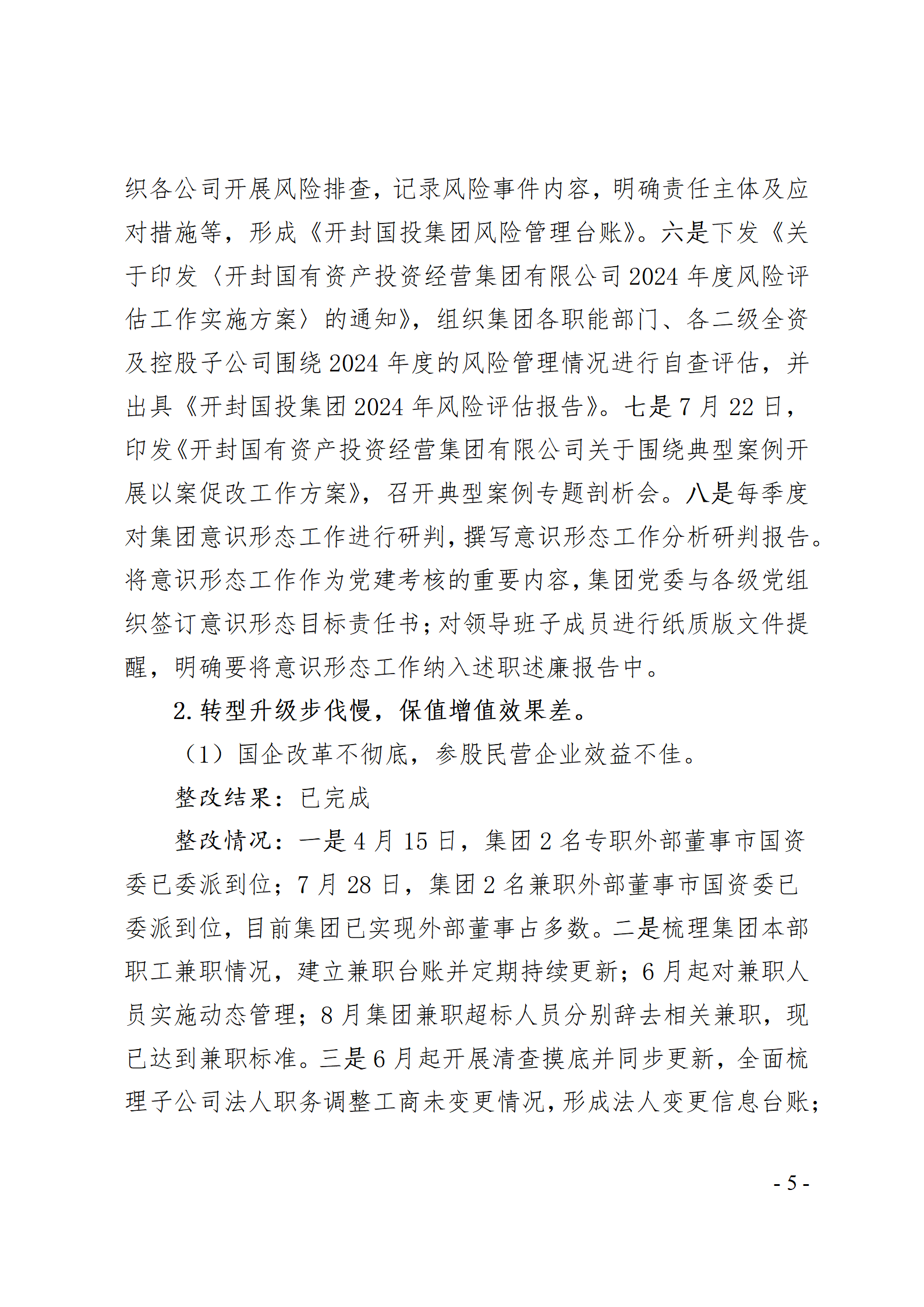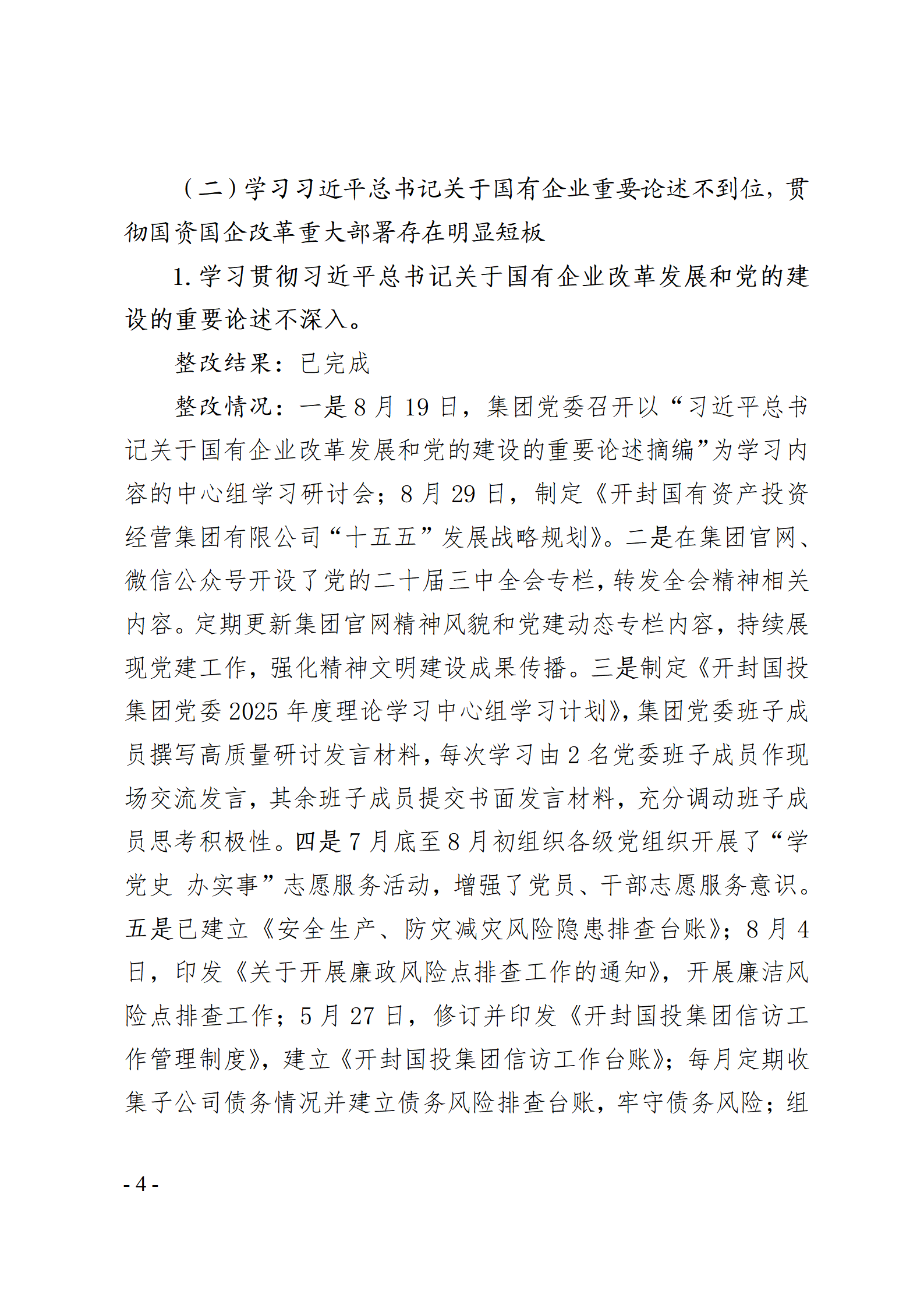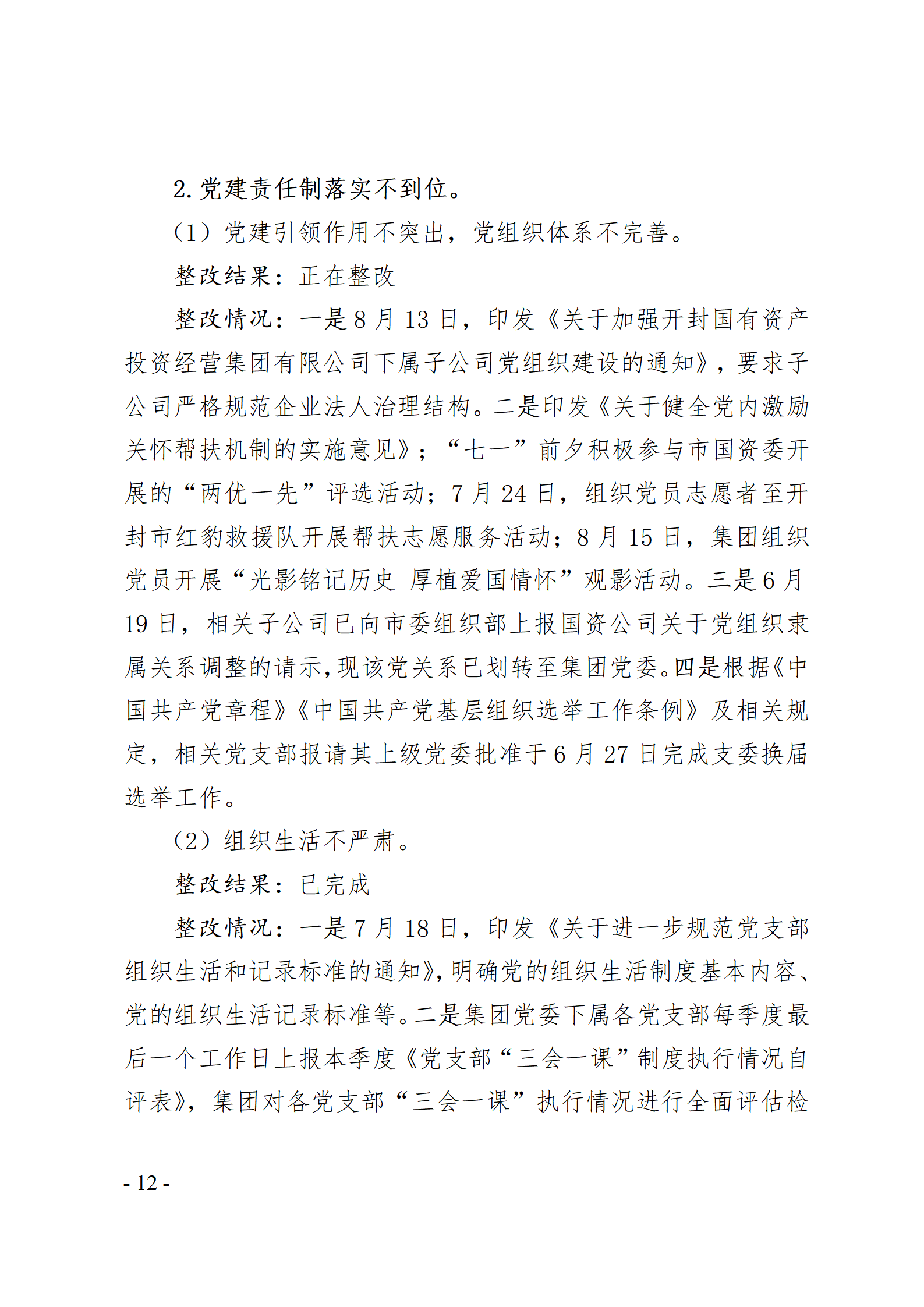 開封國有資產(chǎn)投資經(jīng)營集團有限公司黨委關(guān)于巡察整改情況的通報